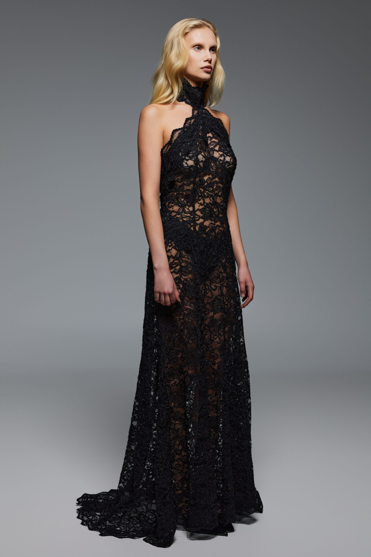 Mid-weight semi-sheer lace-tulle